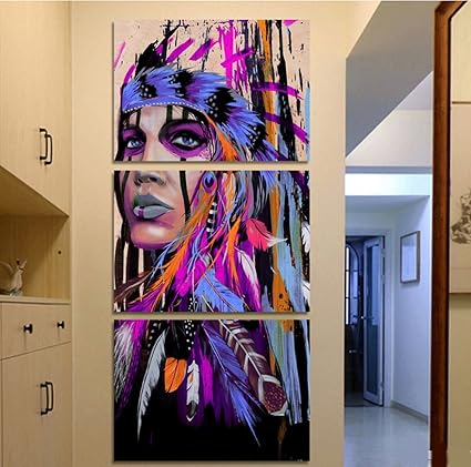 Hd Printed 3 Piece Canvas Art The Indians Feathered Painting Wall