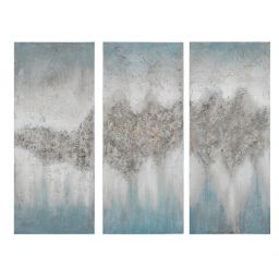 3 Pieces Grey Green Split Joint Oil Painting Hand Painted Canvas