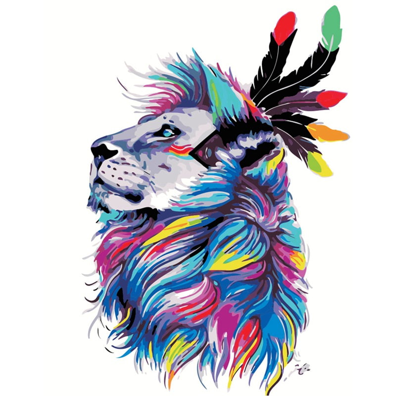 Frameless Colorful Lion Animals Abstract Painting Diy Digital