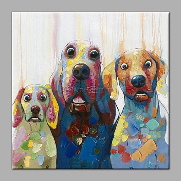 Dreamfactory Hand Painted Modern Art Dog Oil Painting On Canvas