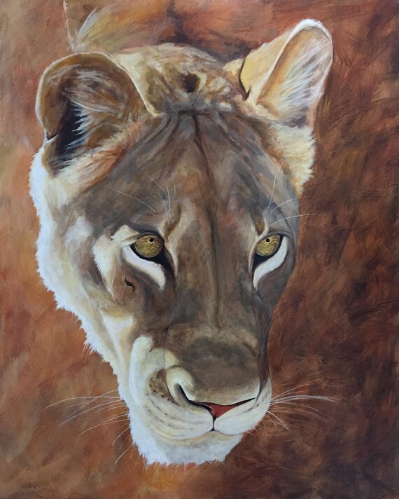 Focused Lioness Acrylic Painting Animal Art Canvas Painting Etsy