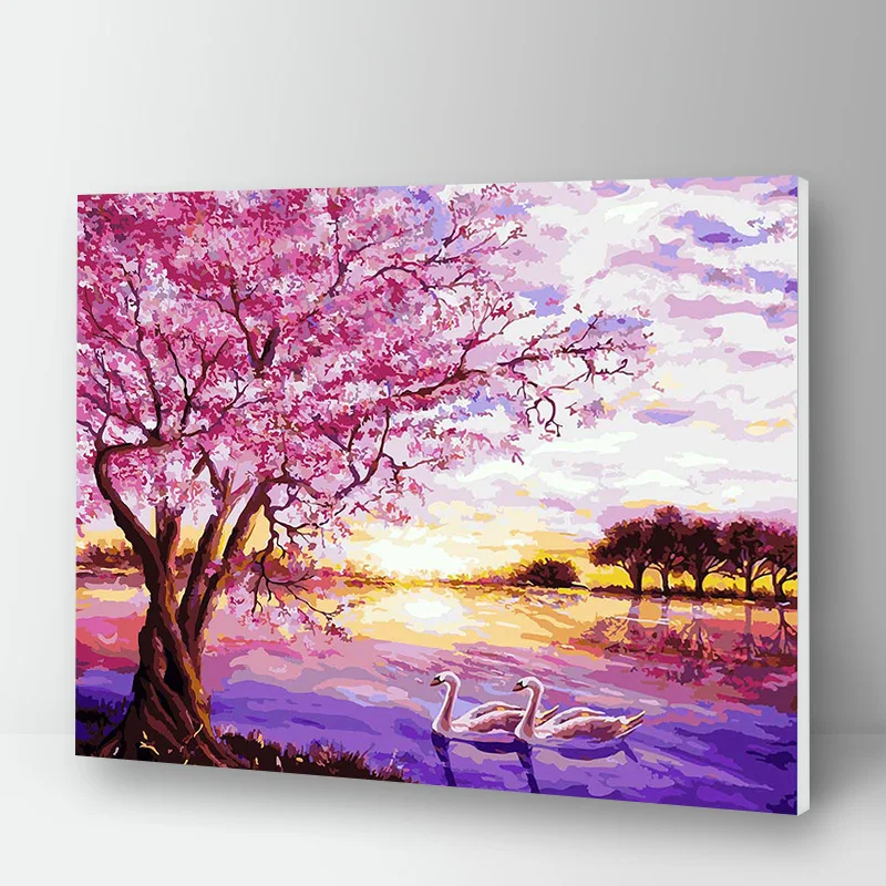 Paint Painting By Numbers Nature Landscape Tree Swan Diy Acrylic