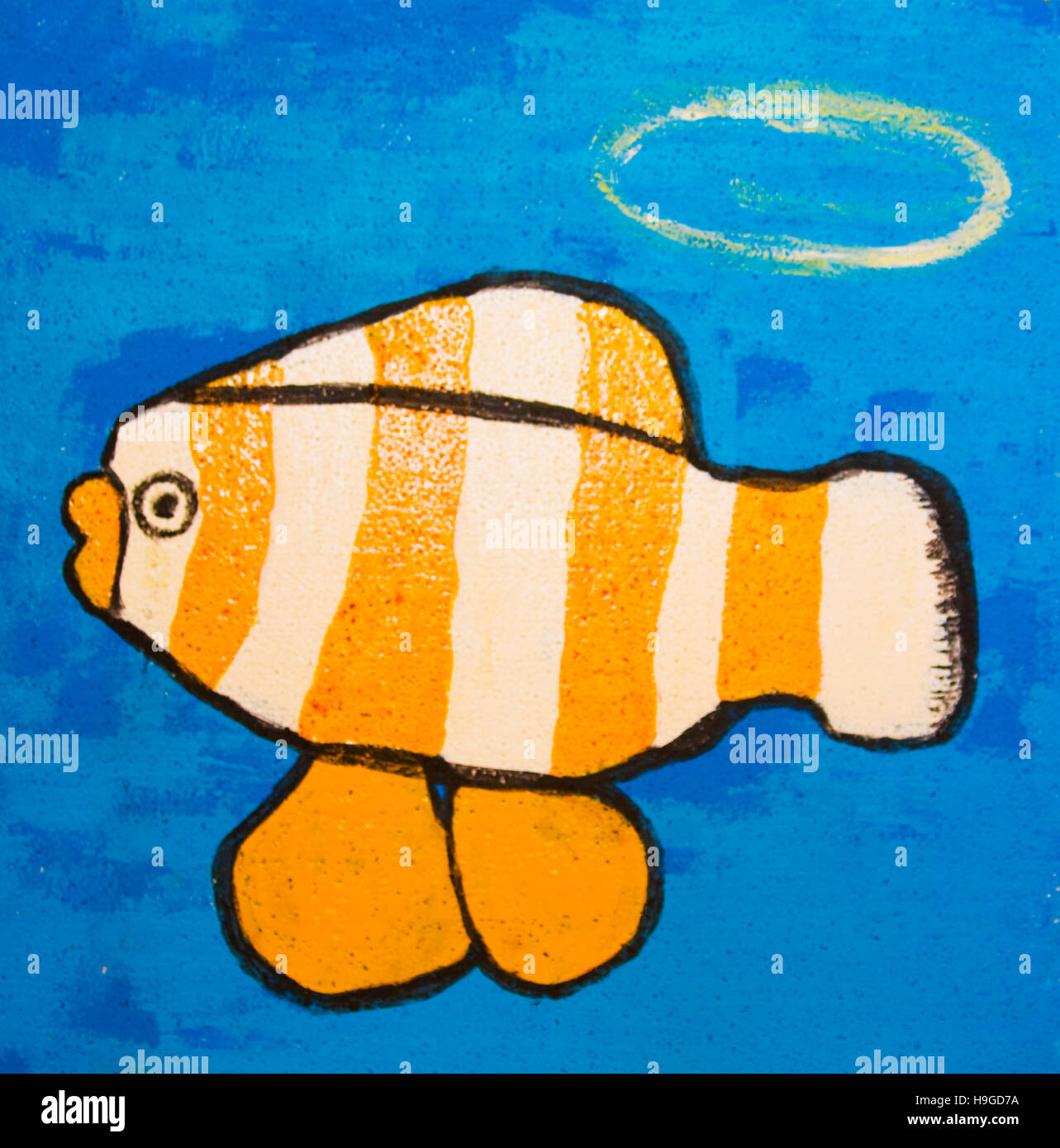 Painting Illustration Acrylic Fish With Yellow And Blue Lines