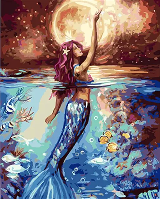 Wonzom Mermaid Painting By Numbers Girl With Whale Oil Painting