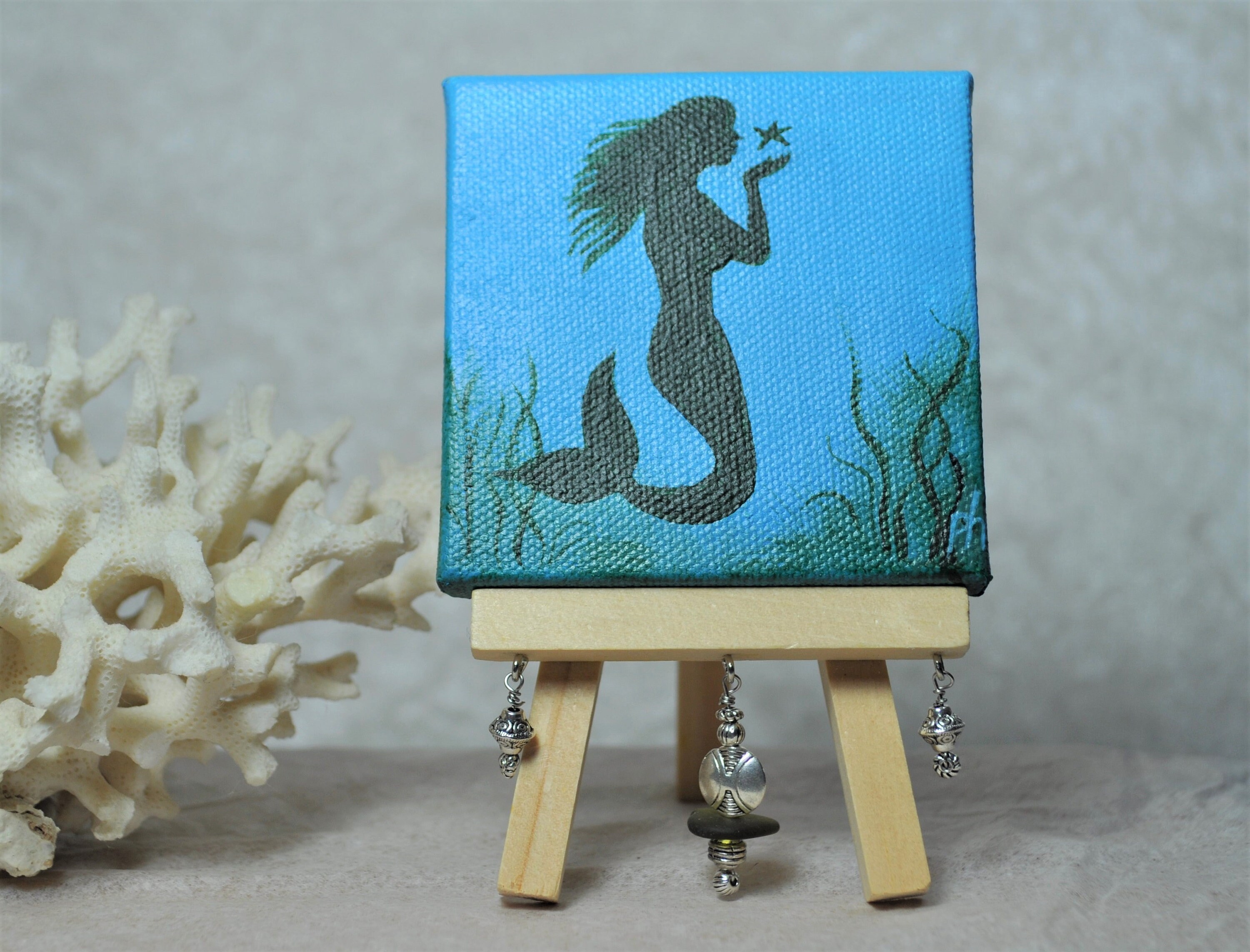 Tropical Mermaid Miniature Painting With Easel Mini Canvas Fine