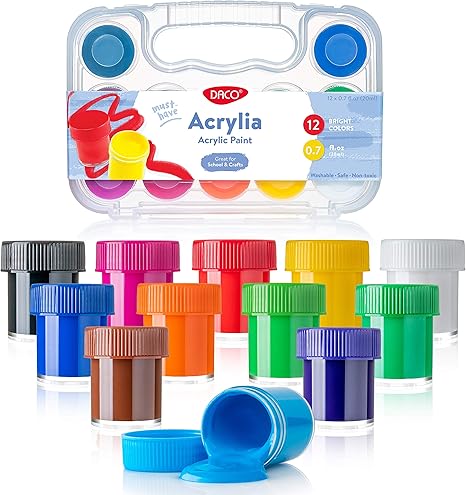 Daco Acrylic Paint Set Acrylia 12 Colors With Travel And Storage