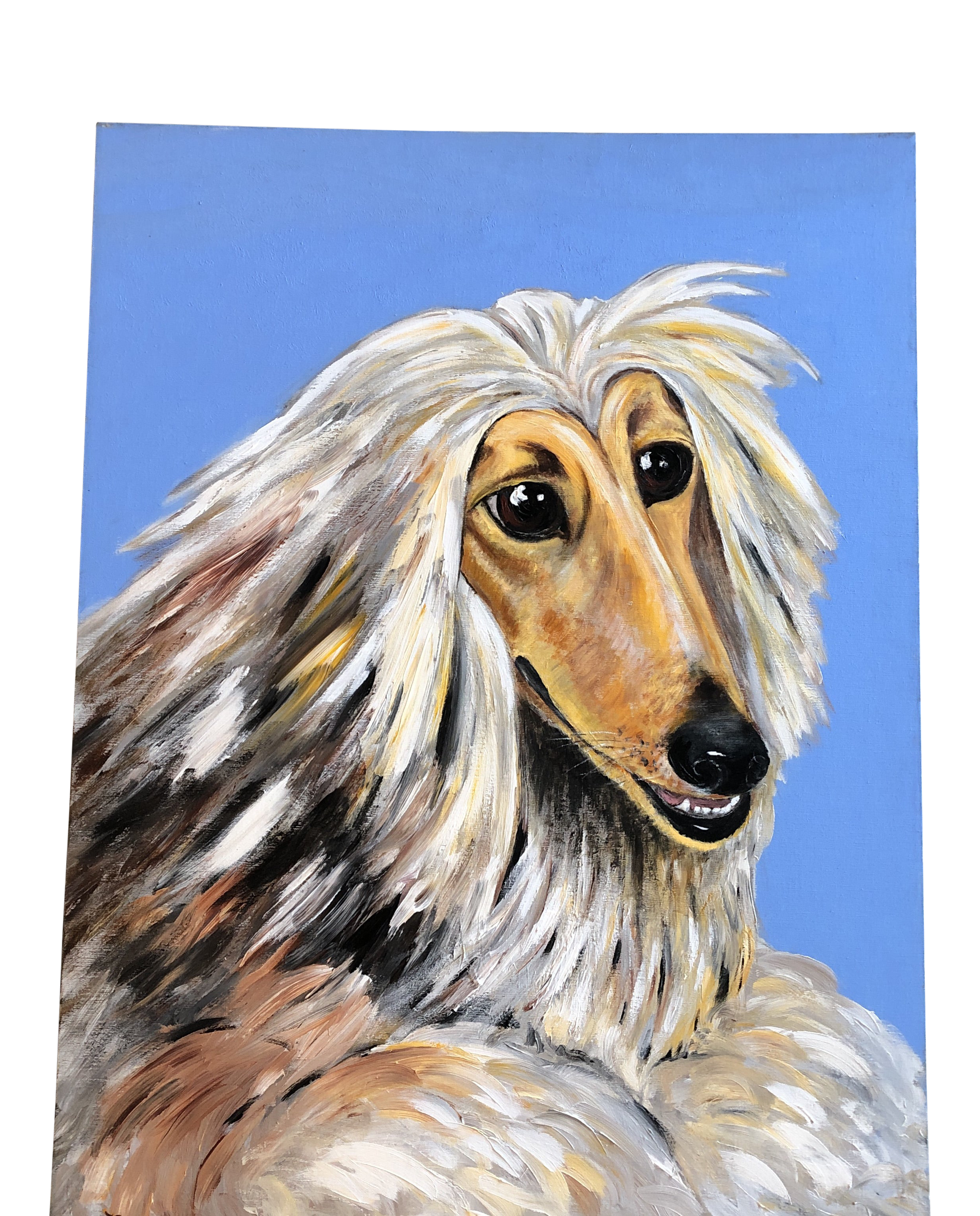 Original Oil Puppy Dog Portrait Painting Afghan Hound Art Artwork